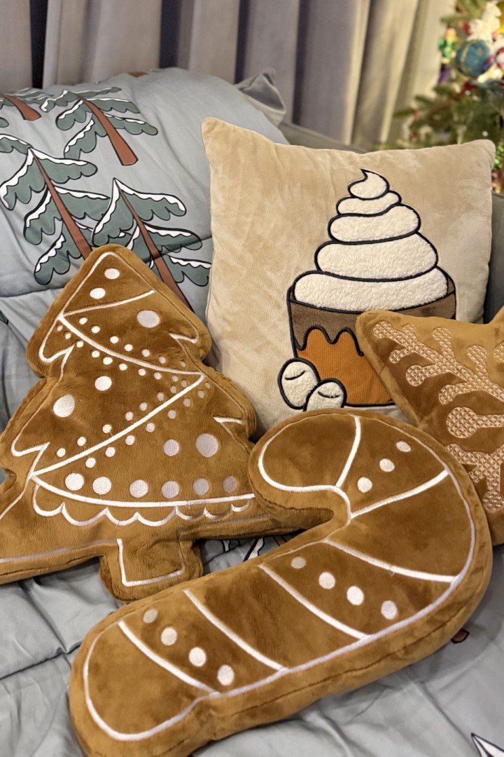 Sweet, soft and utterly charming — this gingerbread candy cane cushion looks just like a cookie decorated with icing! It brings instant festive joy and is perfect for snuggling, decorating or gifting. A little piece of holiday happiness in cushion form.