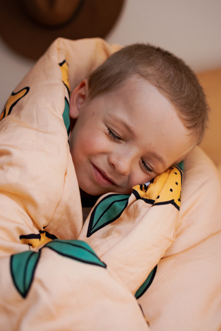 Crafted from satin cotton with hypoallergenic silicone filling, it’s perfect for delicate skin (even for little ones with allergies). The comforter comes in two sizes, so it works beautifully both for younger kids and older ones.