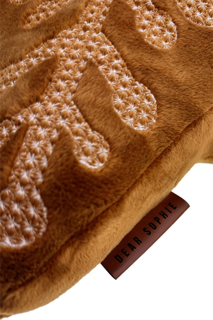 - Soft and cuddly pillow inspired by classic holiday gingerbread