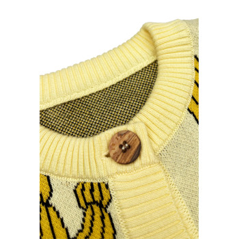 It’s a piece that you won’t find anywhere else. Beautiful cardigan fastened with wooden buttons with DEAR SOPHIE logo on them. Perfect for winter and also for warm days as an outerwear.