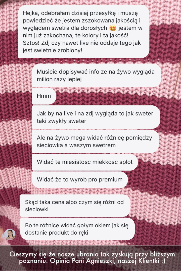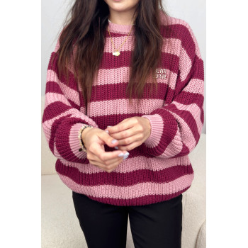 Discover a new level of comfort with the exceptional DEAR SOPHIE sweater! Made from the highest quality cotton yarn, this sweater perfectly combines style and functionality for chilly days. Soft to the touch and breathable, it's perfect for autumn strolls, winter evenings by the fireplace, or outings around town. With trendy wide stripes and two color options – blue-caramel and pink-red – it adds a vibrant touch to any outfit.