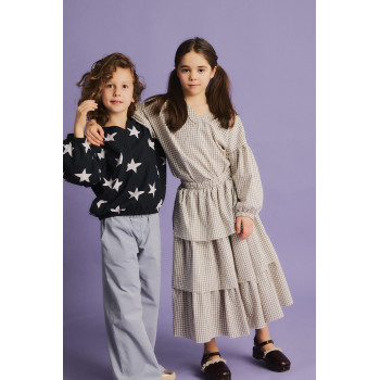 Dream skirt for every little girl! It’s super light, so it spins like crazy! Made of soft and light cotton which makes it really comfy and perfect for every weather. You can pair it with matching blouse for a very cool total look or with our other tops and t-shirts for more basic look. And for colder days it goes perfectly with sweatshirts and bomber jackets.