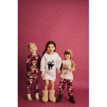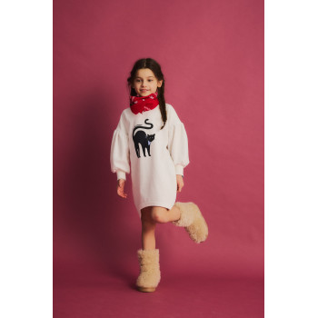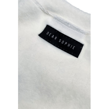 Loose tunic with pleated, puffy sleeves. Made of new velvet fabric with really cool contrasting finishing around the neck. The tunic can be styled in a few ways – as a dress itself or combined with leggings – printed or basic one – such an outfit would even distinguish the tunic even more.