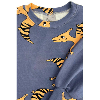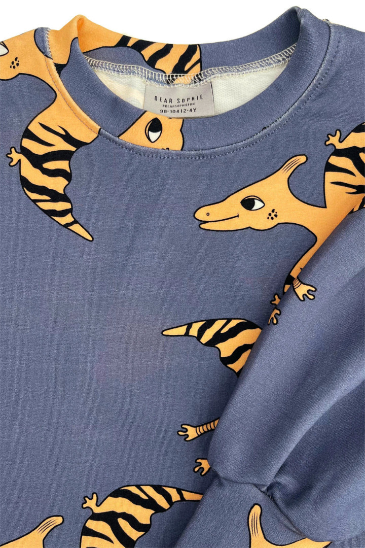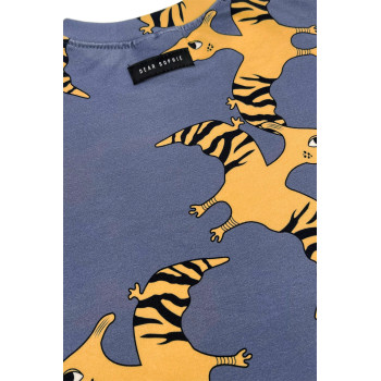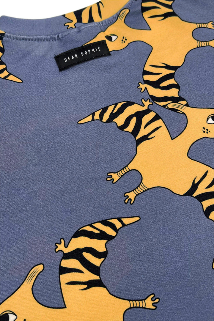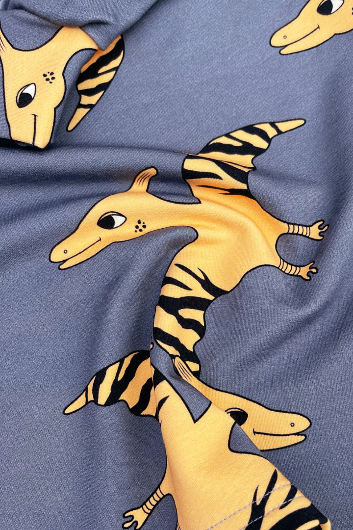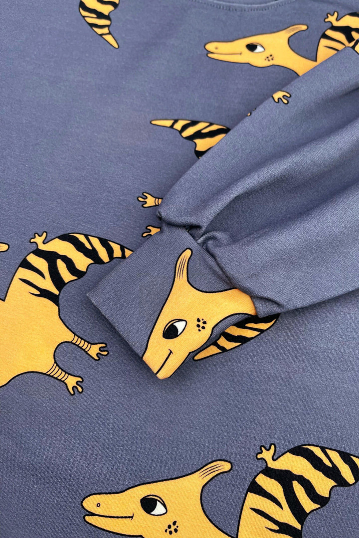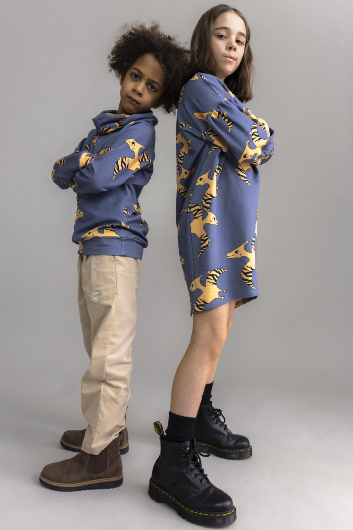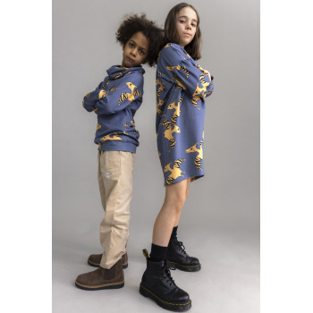 Loose tunic with pleated, puffy sleeves. The tunic can be styled in a few ways – as a dress itself or combined with leggings. Another one can match this tunic with plain bottom – such an outfit would even distinguish the tunic even more.