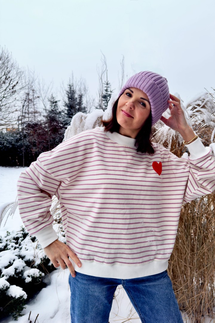 Stripes + embroidered heart on the front – a beautiful detail that completes the look