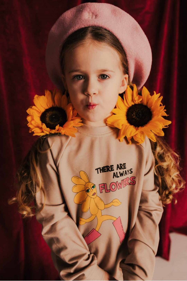 Casual and comfortable kids’ outfit. Sweatshirt with classy, single print at front applied using the screen printing technique.