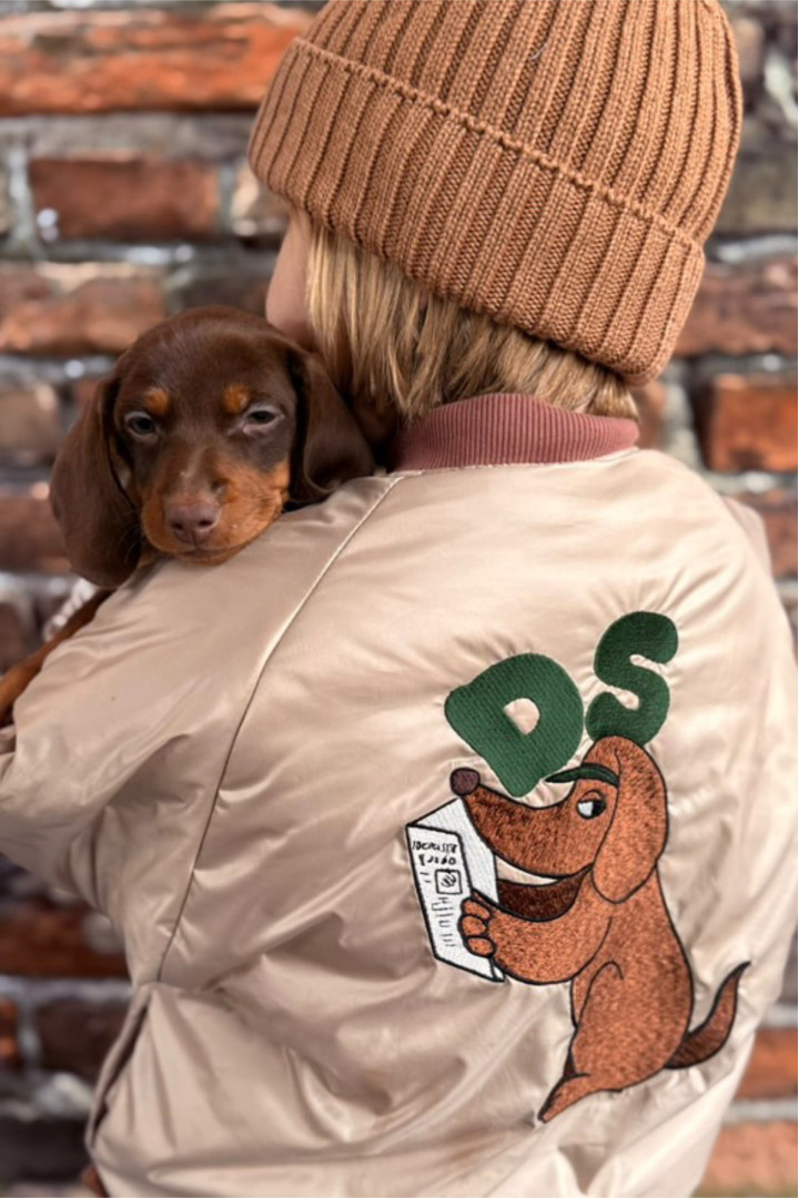 New in DEAR SOPHIE family! Super cool bomber jacket with embroidery on the back. It’s more basic, so you can wear it with everything. It’s super comfy, with nickel-free zipper with secure under the neck and cute contrasting finished around the neck.