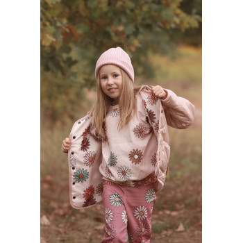Beautiful reversible jacket with flowers print on one side and more basic quilted fabric on the other side.