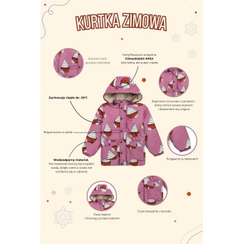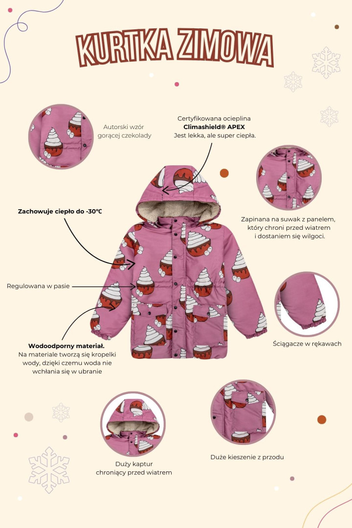 Long winter jacket perfect for those really cold days. It’s water repellent, has a big detachable hoodie and inner drawstring so it fits perfectly. We also haven't forgotten about pockets for our Little Explorers for their little-big treasures, hanger and zipper with security under neck, to make sure putting it on is a pure pleasure.