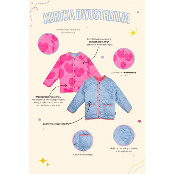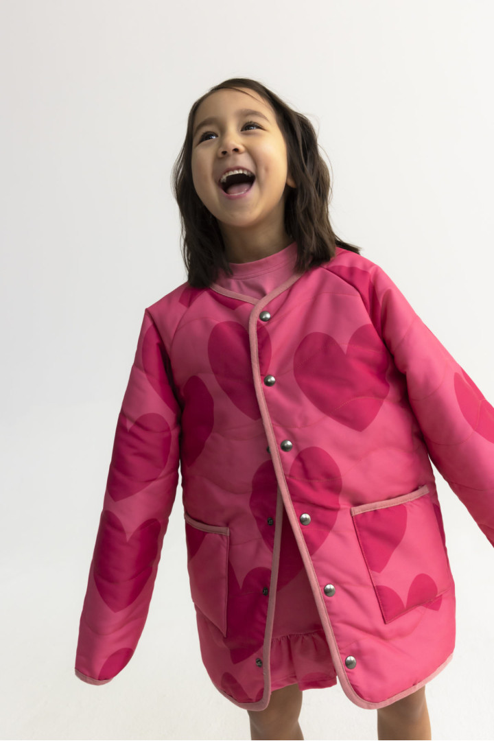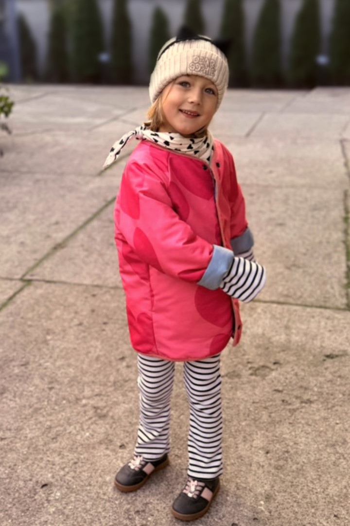 Beautiful reversible jacket with flowers print on one side and more basic quilted fabric on the other side.