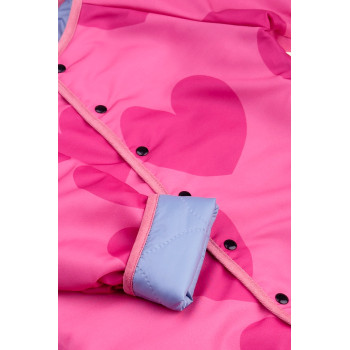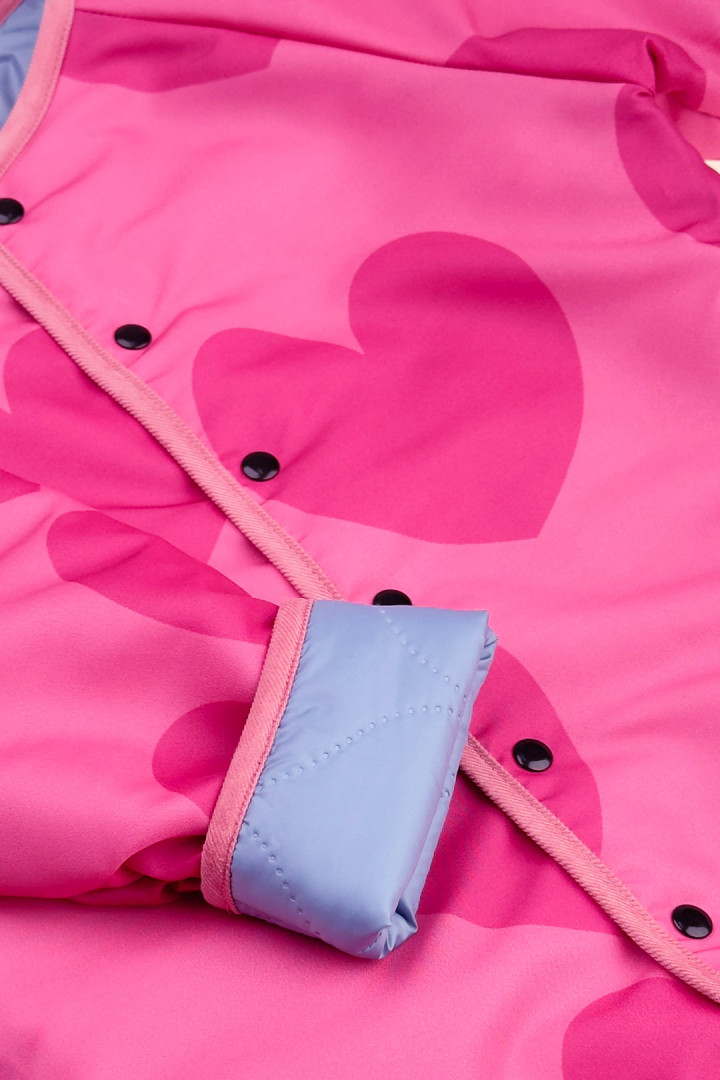 Our jacket is water repellent, which means its surface causes water to not absorb into the garment easily, instead, water beads on the outside (printed side).