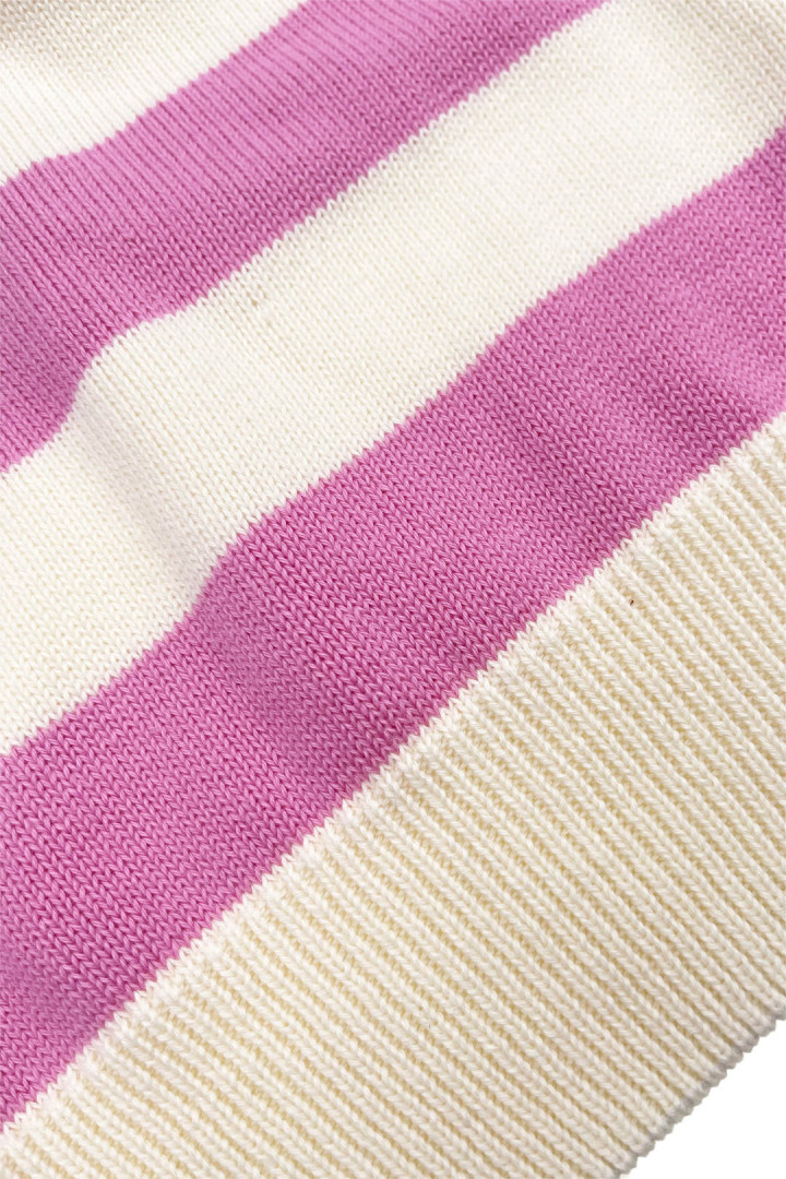 A super comfortable striped sweater with a small embroidery on the chest, made of cotton, making it soft and non-itchy.