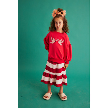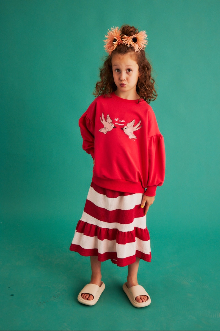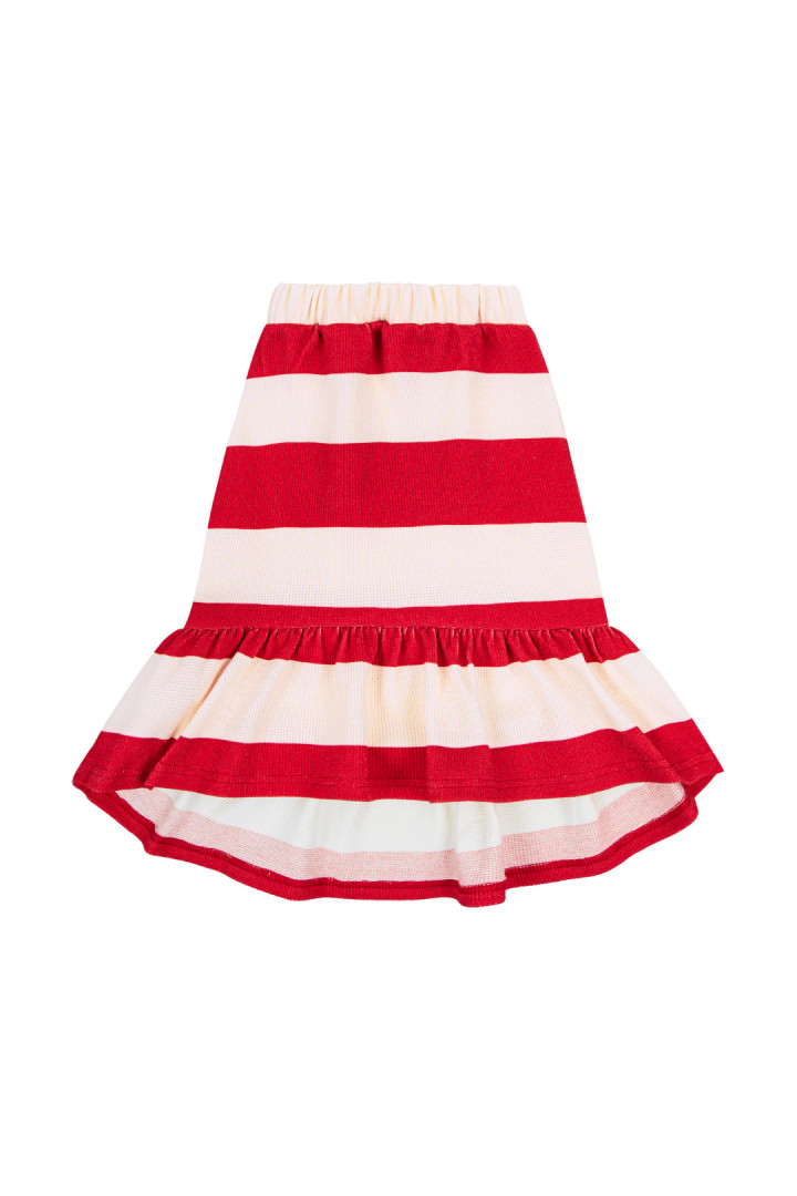 Ever since you saw this shape in one of our photos, you've sent us with so many requests for this specific skirt. We had no other choice then but to make it. It's slightly flared from the waist down, but the most important detail – a large ruffle, extended at the back. This shape is truly unique and we can't wait to see your photos!