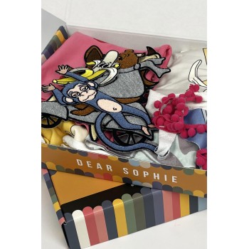 Our colorful box full of treasures is the perfect solution if you want to stimulate your little one's imagination. The box is filled with material cutouts, embroidery, and other elements that provide endless possibilities for play - you can design, create, style, and much more.