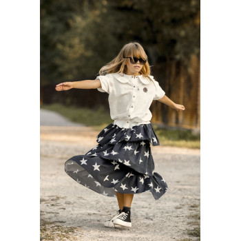 Dream skirt for every little girl! It’s super light, so it spins like crazy! Made of soft and light cotton which makes it really comfy and perfect for every weather. You can pair it with matching blouse for a very cool total look or with our other tops and t-shirts for more basic look. And for colder days it goes perfectly with sweatshirts and bomber jackets.