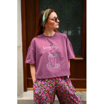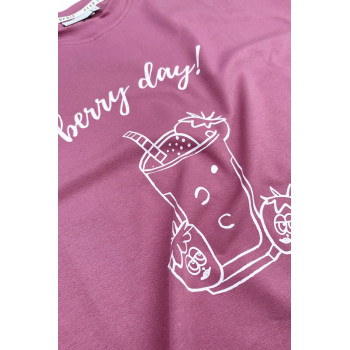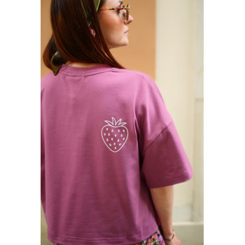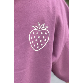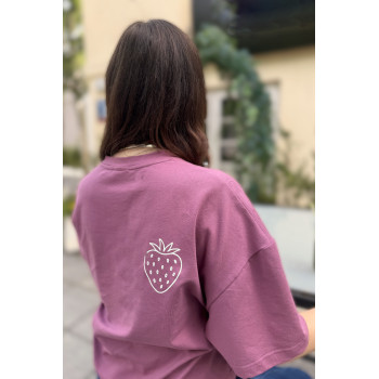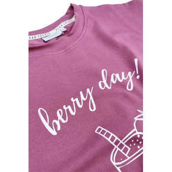 The berry-toned fabric and playful “Berry Day” print bring a hit of summer sweetness, while the single strawberry on the back adds a little surprise.