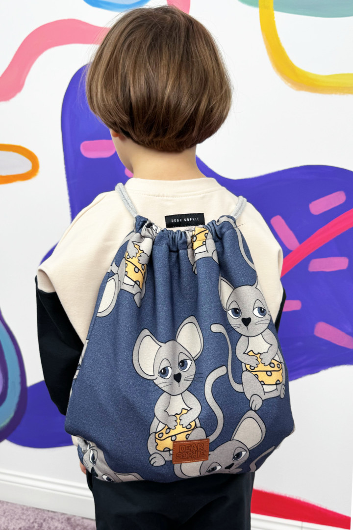 Zabierz radość i kolor do przedszkola i szkoły z tym uroczym plecako-workiem! Wykonany z miękkiej dresówki, ozdobiony wesołymi wzorami, które rozświetlą każdy dzień.