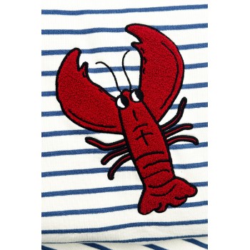 - Paski + subtelne haftowany homar na piersi – detal, który dodaje charakteru