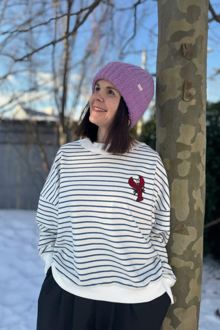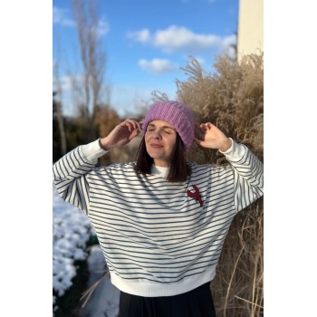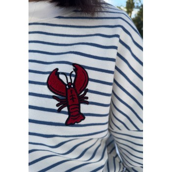 Jeśli szukasz bluzy, która jest jednocześnie wygodna i wygląda świetnie bez żadnego kombinowania — to jest ten typ. Paski robią stylizację od razu, a małe haftowany homar na piersi dodaje jej uroku i subtelnego „czegoś”. To detal, który zauważysz Ty i który zauważą inni — bez efektu przesady.
