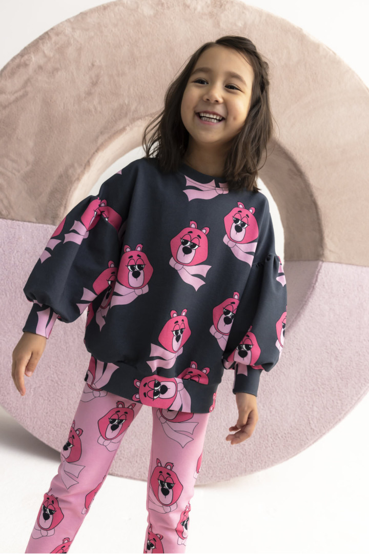 Luźna bluza z bufiastymi rękawkami – wszystko to dzięki marszczeniom na ramionkach. Można z nią stworzyć wiele świetnych kombinacji – zarówno z wzorzystymi dołami jak i z gładkimi, ze spodniami i spódniczkami, krótszymi i długimi. Wykonana z miękkiej, wysokiej jakości bawełny z certyfikatem OEKO Tex Standard 100 bezpiecznej dla skóry każdego Malucha. Wykończona czarną metką DEAR SOPHIE na plecach.