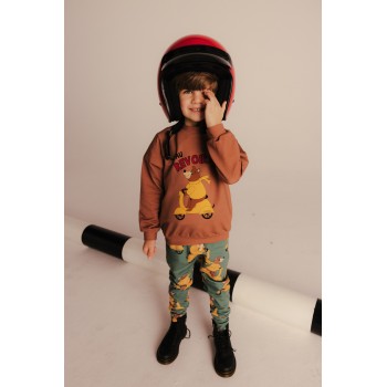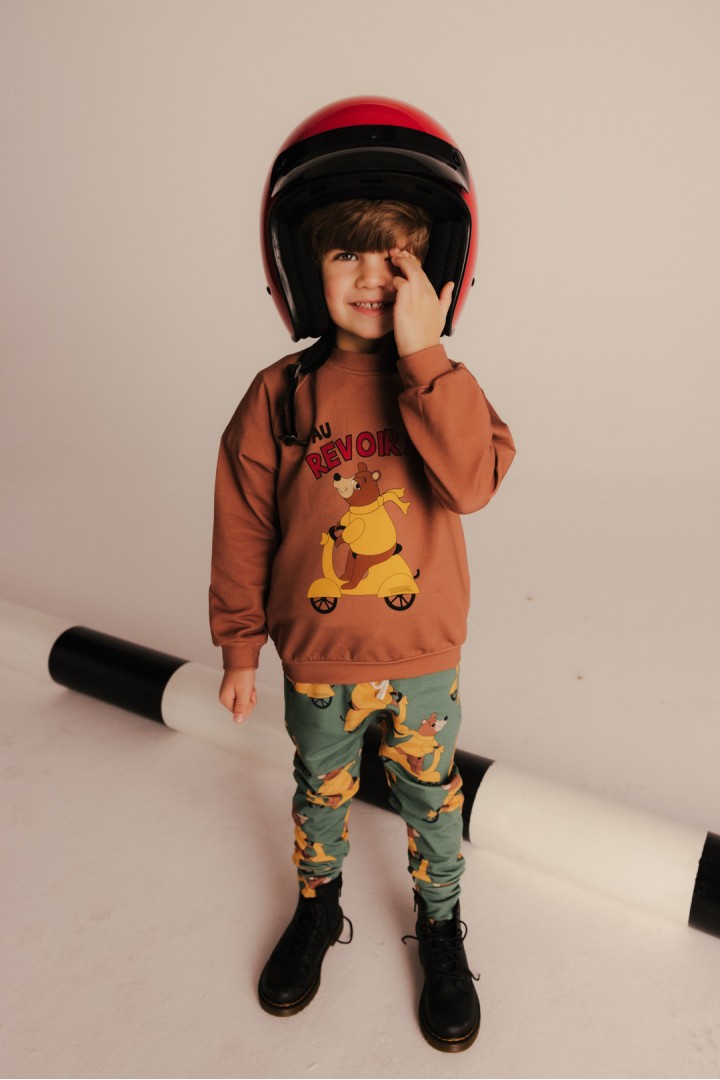 Praktyczna, wygodna i oryginalna stylizacja dziecięca. Raglanowa bluza z minimalistycznym nadrukiem naniesionym na ubranko metodą sitodruku.