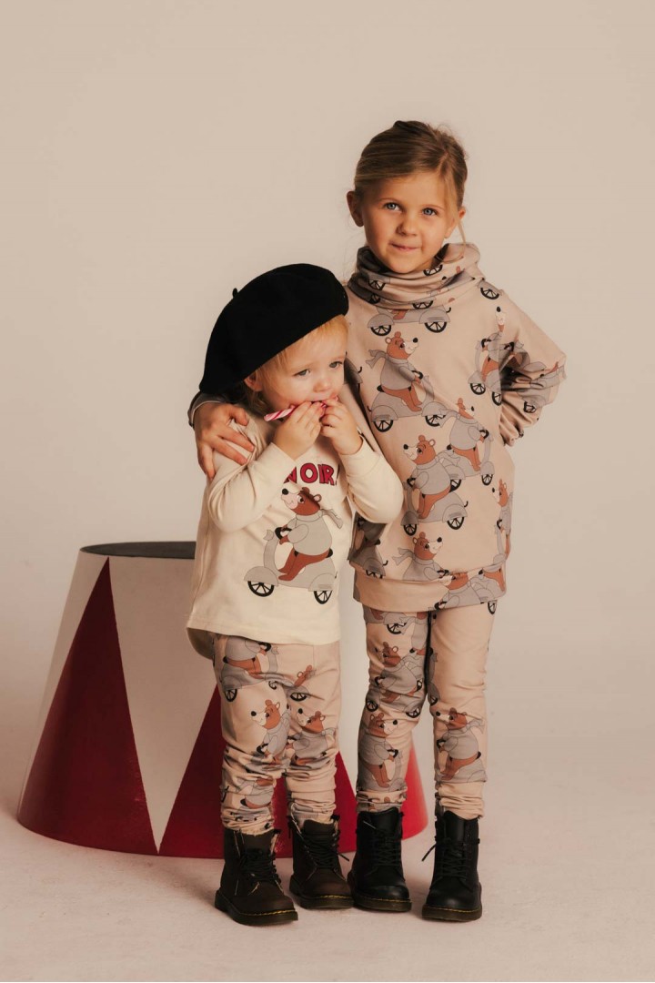 Autorski wzór jest naniesiony na ubranko techniką druku cyfrowego, co sprawia, że nadruk jest niewyczuwalny. Materiał wykonany z bawełny z przędzy organicznej jest przyjazny nawet dla małych alergików.