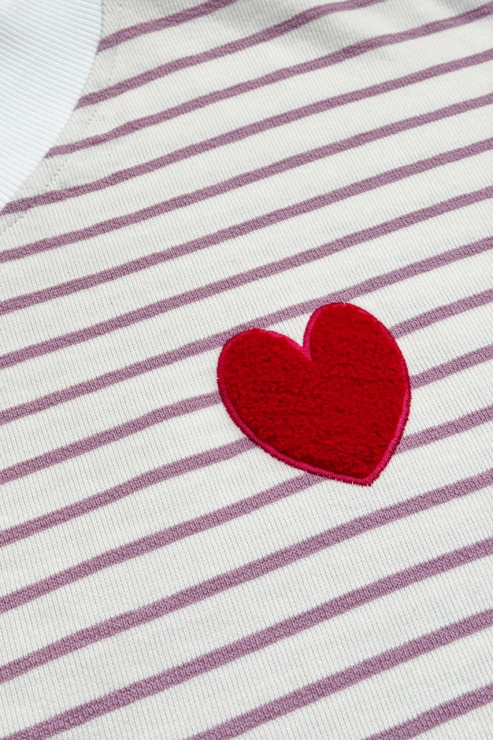 - Paski + subtelne haftowane serce na piersi – detal, który dodaje charakteru