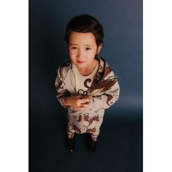 Bluza wykonana została z bawełny z przędzy organicznej produkowanej na nasze specjalne zamówienia przez polskiego producenta. Taka bawełna jest odpowiednia dla delikatnej i wrażliwej skóry. Druk naniesiony został metodą druku cyfrowego, co sprawa, że jest on niewyczuwalny i nie drażni skóry Malucha.