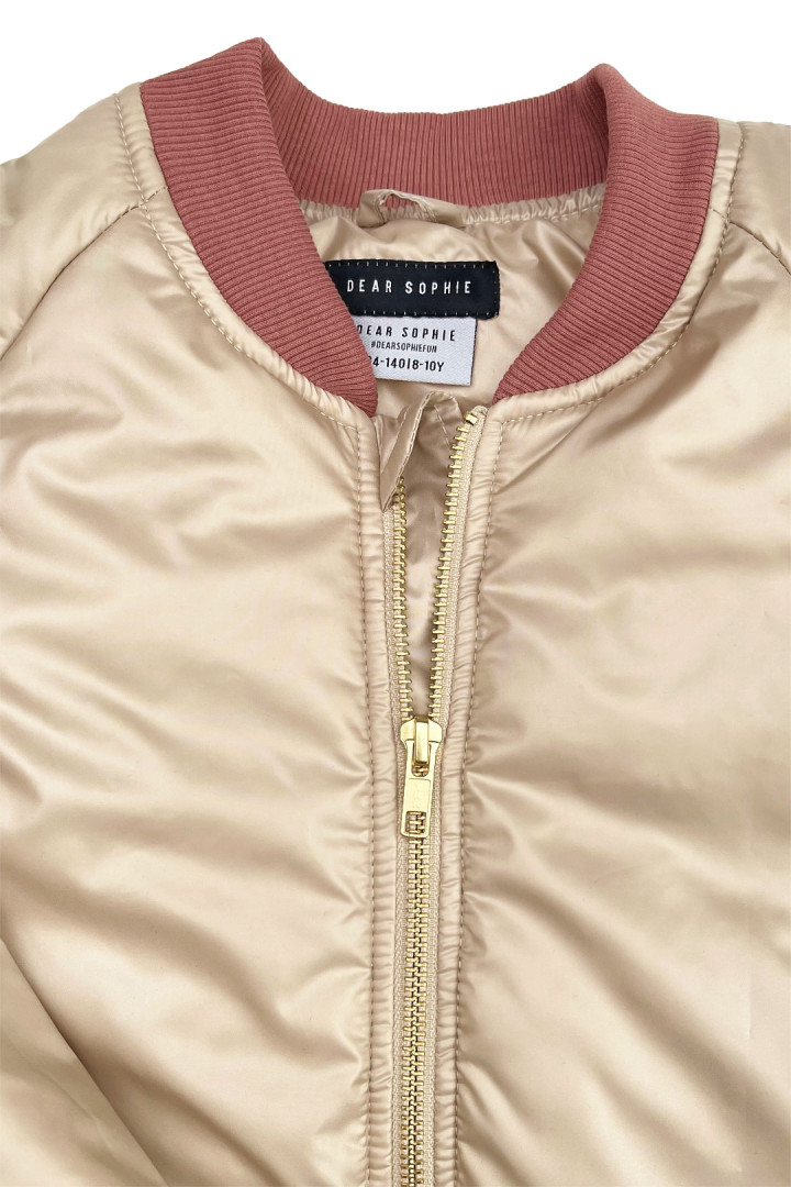 Nowość w rodzinie DEAR SOPHIE. Wyjątkowa kurtka bomberka z haftem na plecach. Nieco bardziej basic’owa dzięki czemu będzie pasowała do każdej stylizacji. Jest wyjątkowo wygodna, lekka, z bezniklowym zamkiem z osłonką pod szyją, a także kontrastującym wykończeniem wokół szyji.