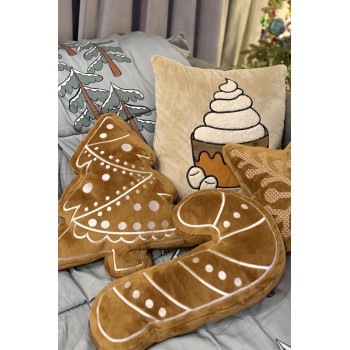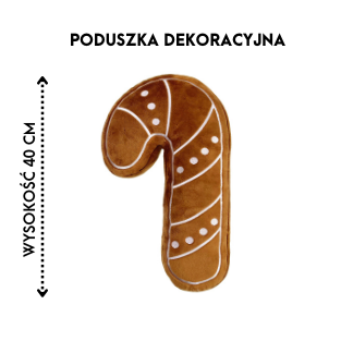 Ta piernikowa laska cukrowa wygląda jak ciasteczko, które aż prosi się o ozdobienie białym lukrem - i dokładnie takie hafty ją zdobią. To poduszka, która wywołuje uśmiech od razu po spojrzeniu, a po przytuleniu już w ogóle nie chce się jej wypuścić. Idealna do salonu, dziecięcego pokoju albo jako radosny prezent na Mikołajki.