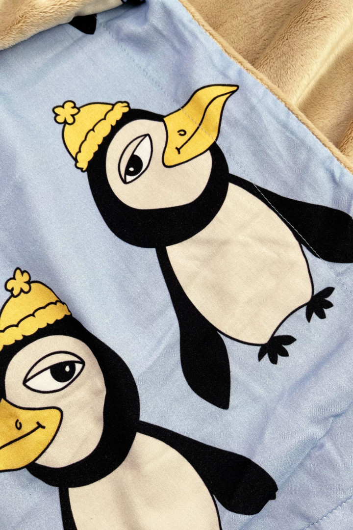 Z jednej strony zdobi go nasz autorski, wyjątkowy wzór, a z drugiej gładki, przyjemny w dotyku materiał minky – gwarancja przytulnych chwil w każdych warunkach.