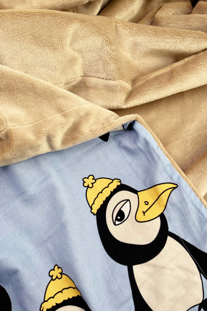 Wykonany z najwyższej jakości bawełny satynowej oraz miękkiego minky – bez wypełnienia, więc doskonały na cieplejsze dni lub jako dodatkowa warstwa w chłodniejsze wieczory. Dostępny w dwóch rozmiarach: 100x135 oraz 150x200.