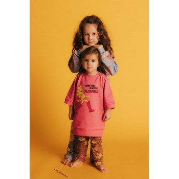 Autorski wzór jest naniesiony na ubranko techniką druku cyfrowego, co sprawia, że nadruk jest niewyczuwalny. Materiał wykonany z bawełny z przędzy organicznej jest przyjazny nawet dla małych alergików.