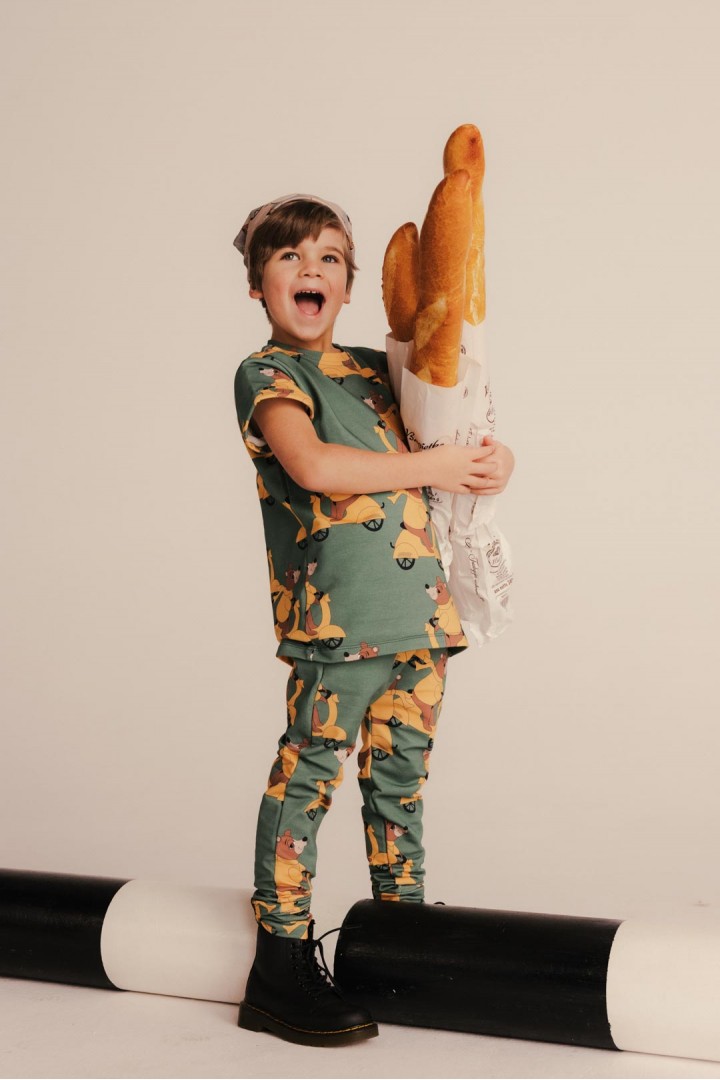Autorski wzór jest naniesiony na ubranko techniką druku cyfrowego, co sprawia, że nadruk jest niewyczuwalny. Materiał wykonany z bawełny z przędzy organicznej jest przyjazny nawet dla małych alergików.