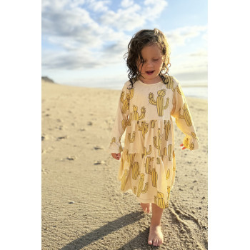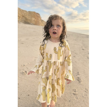 Nasza cudowna sukienka z warstwami układającymi się w piękne fale oraz rękawami wykończonymi uroczą falbanką, to nasz absolutny hit! Wykonana z miękkiej bawełny organicznej, co sprawia, że jest wygodna i nie krępuje ruchów. A do tego jest lekka dzięki czemu cudownie się kręci – a jak każdy wie to jedna z najważniejszych cech jakie musi posiadać każda sukienka.