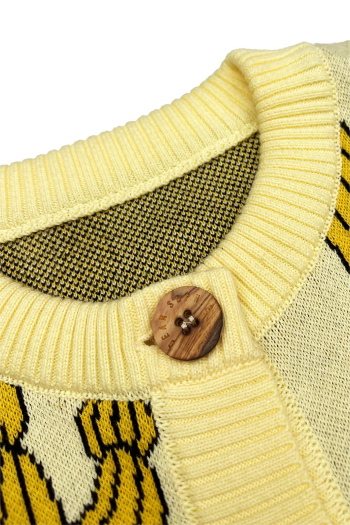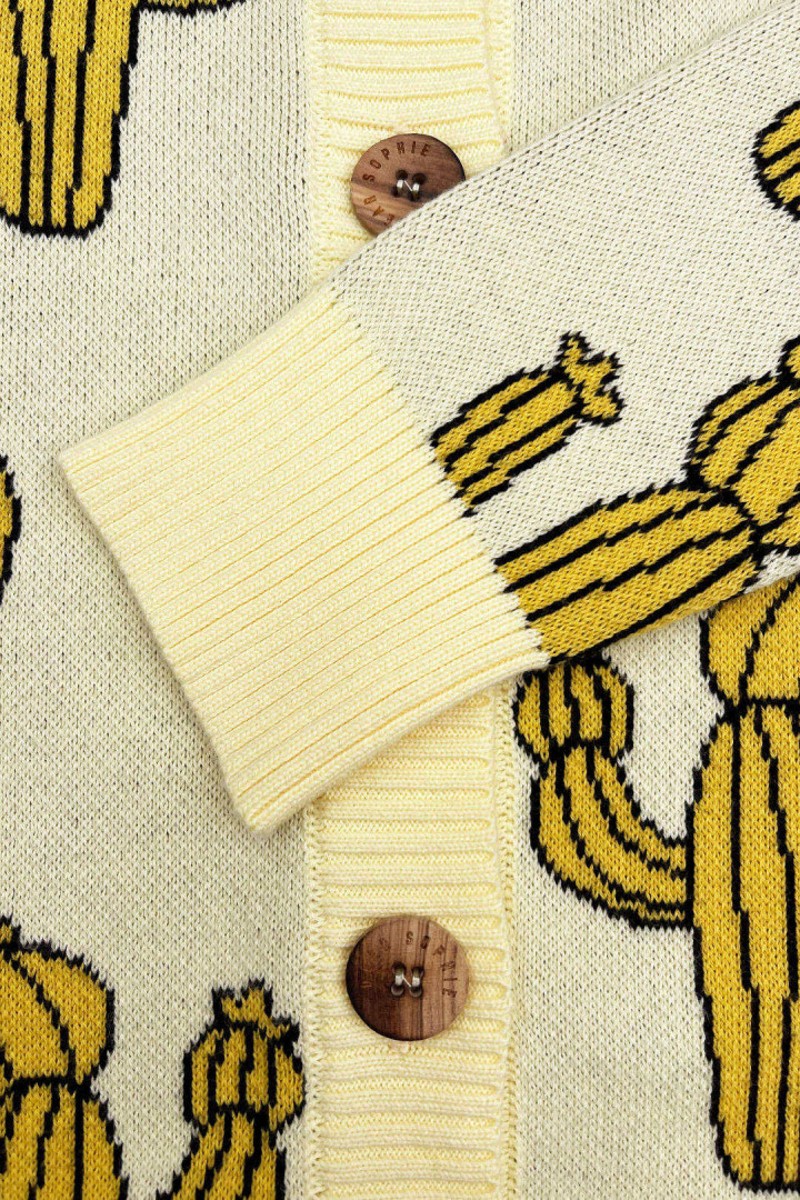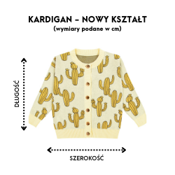 Takiego ubranka nie znajdziecie nigdzie indziej. Przepiękny rozpinany kardigan, pełen naszych oryginalnych wzorów. Mięciutki, nie gryzie ani trochę (gwarantujemy!), zapinany na drewniane guziki z logo DEAR SOPHIE. Sprawdzi się przez cały rok – może służyć zamiast kurtki jako okrycie wierzchnie oraz zamiast bluzy.