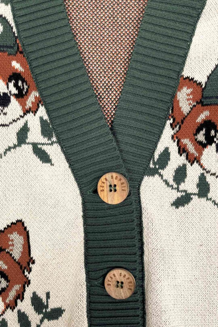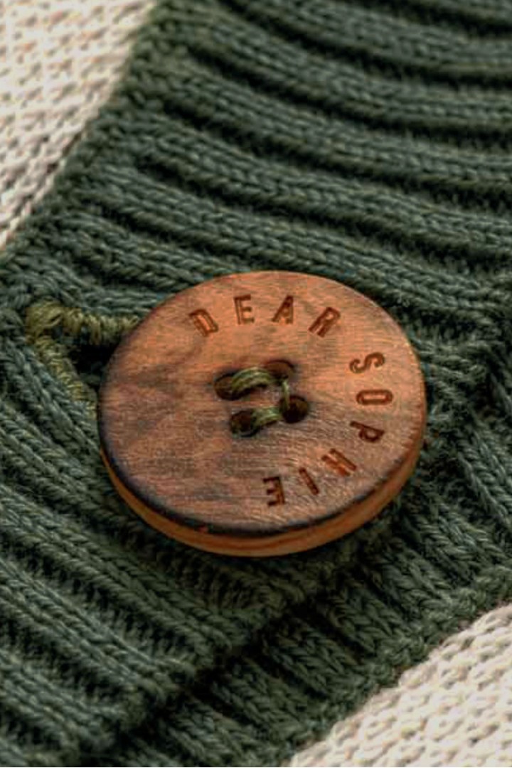 Takiego ubranka nie znajdziecie nigdzie indziej. Przepiękny rozpinany kardigan, pełen naszych oryginalnych wzorów. Mięciutki, nie gryzie ani trochę (gwarantujemy!), zapinany na drewniane guziki z logo DEAR SOPHIE. Sprawdzi się przez cały rok – może służyć zamiast kurtki, jako okrycie wierzchnie oraz zamiast bluzy.