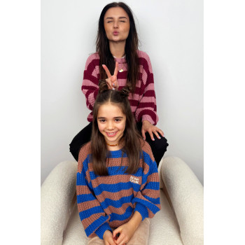 RÓŻOWO-BORDOWE PASY SWETER DLA NIEJ