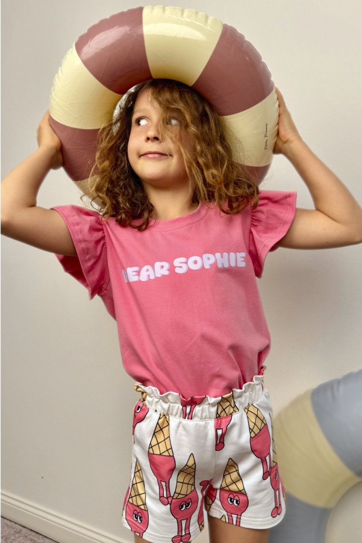Minimalistyczny nadruk z logo DEAR SOPHIE, który idealnie uzupełni każdą stylizację i sprawdzi się dla tych, którzy lubią łączyć nasze kolorowe wzory z bardziej basicowymi elementami.