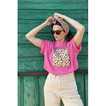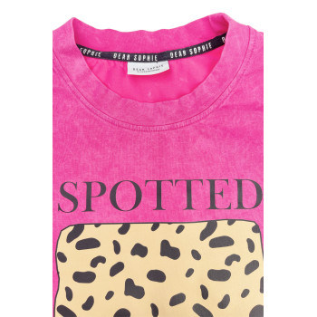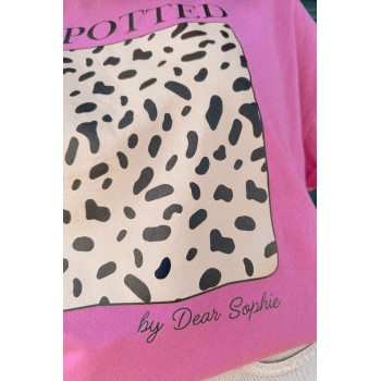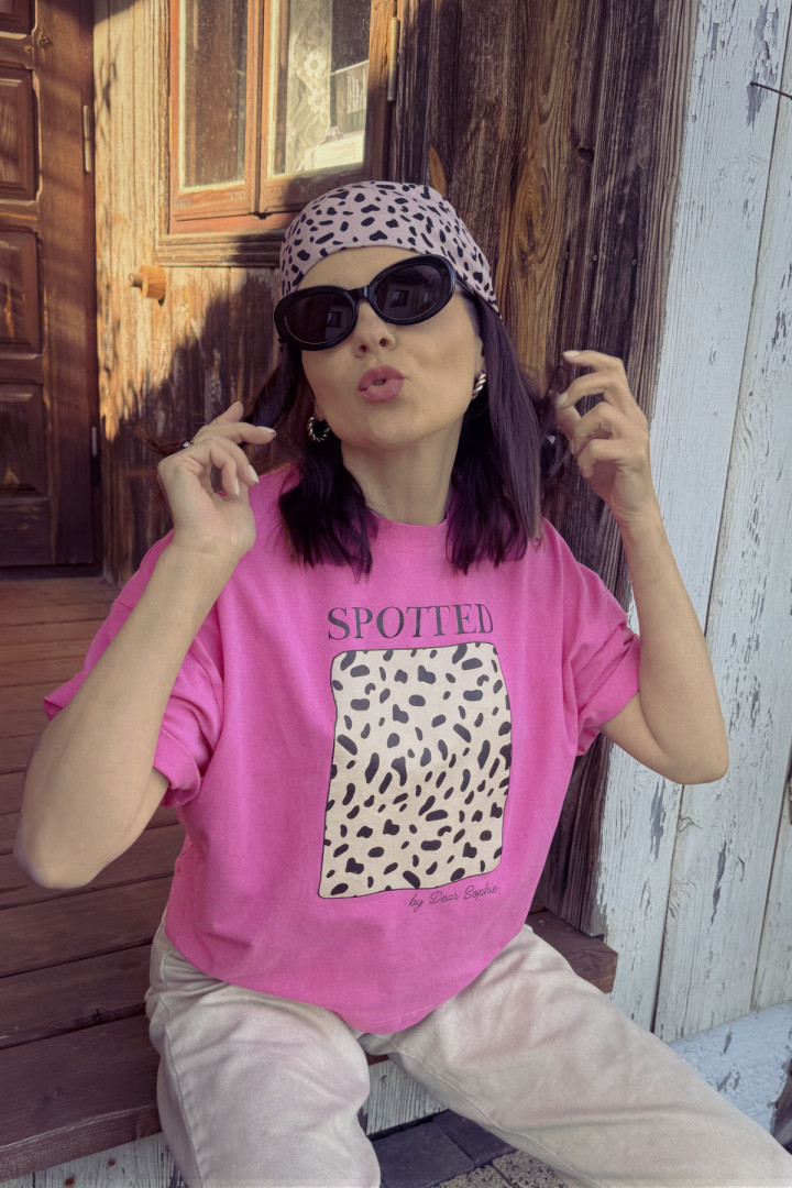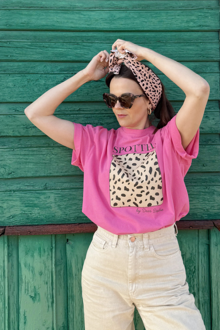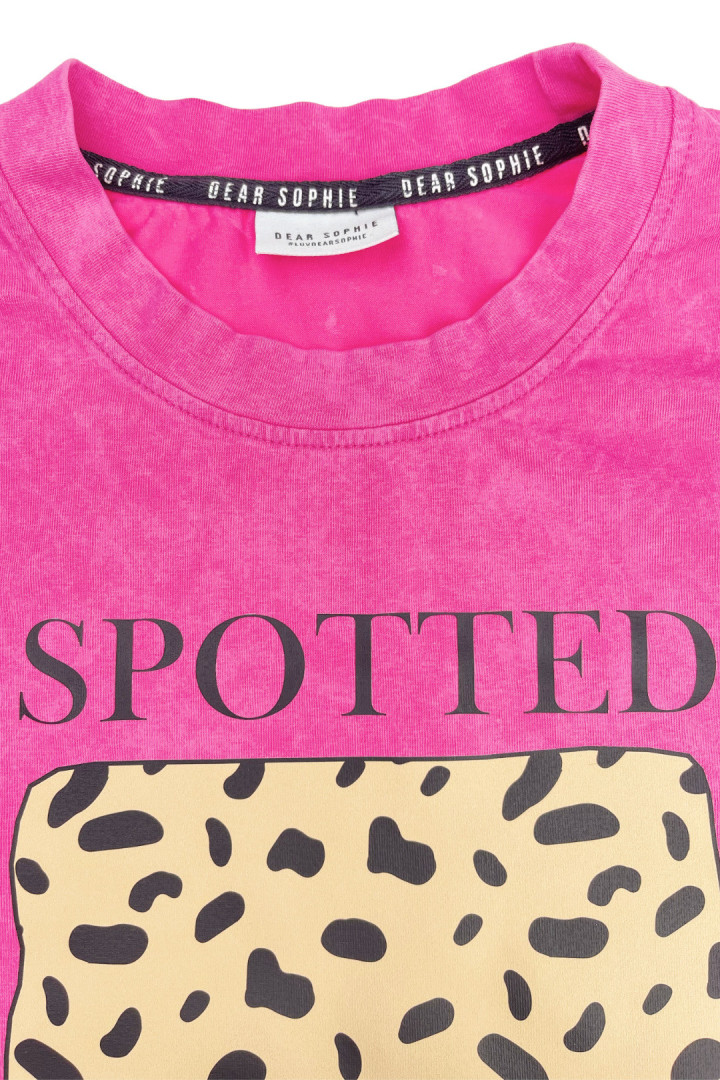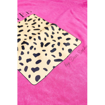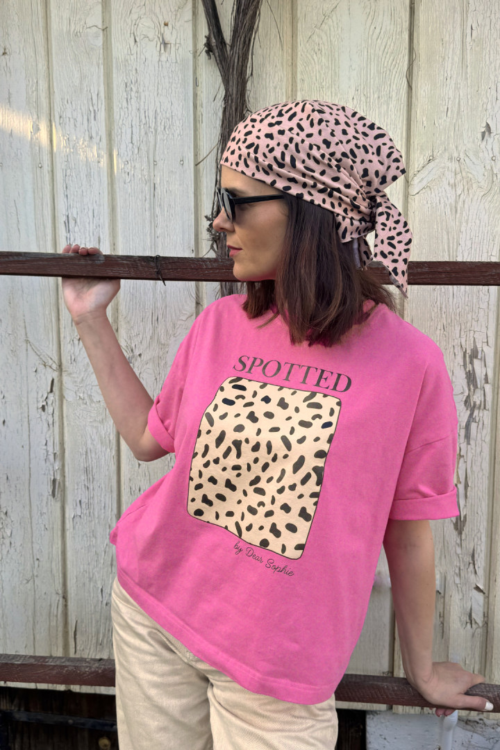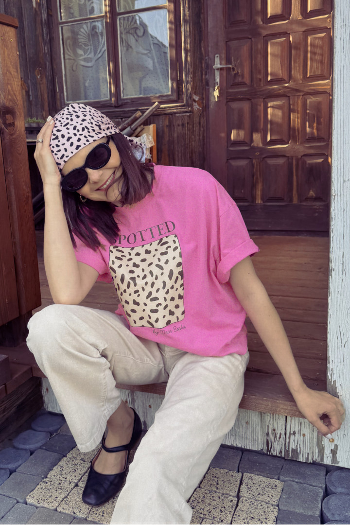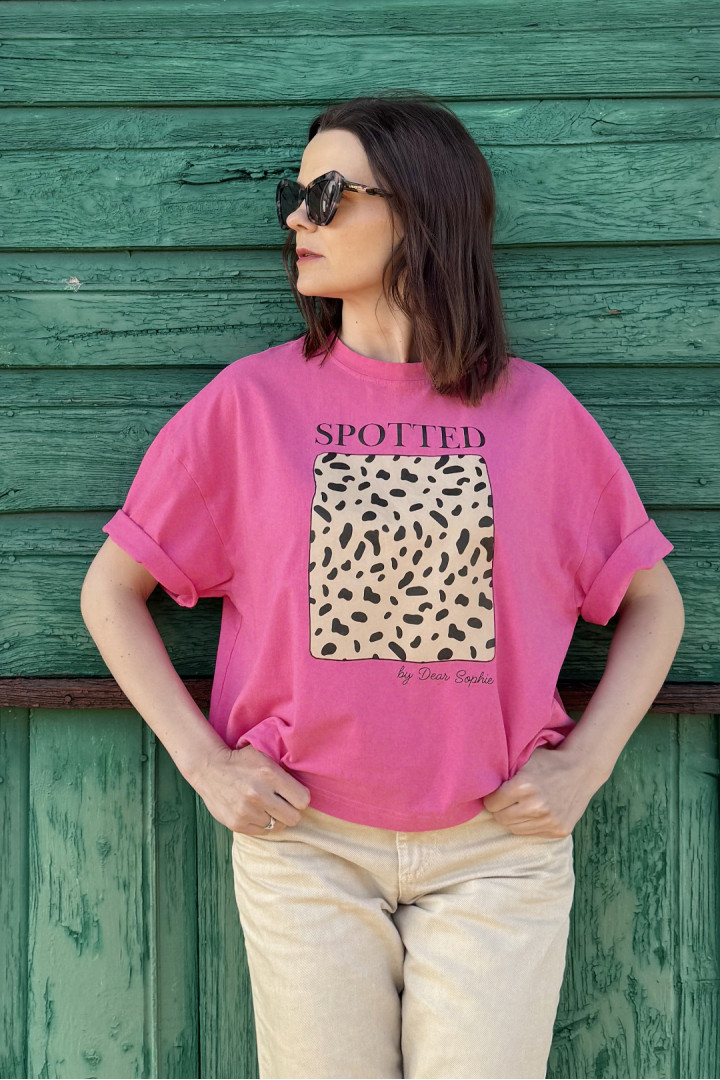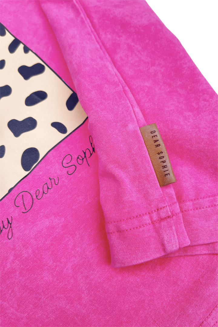 Ma vibe letniego festiwalu, dnia bez planu, śmiechu bez powodu. Mocny róż z efektem vintage i wyróżniający się nadruk by DEAR SOPHIE na przodzie. Noś z dżinsami, lnianymi spodniami, albo zarzuć na kostium kąpielowy.